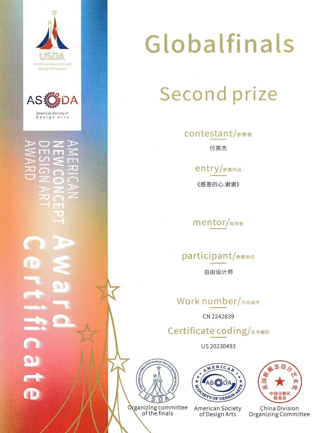 · 2024年获得USDA美国新概念设计艺术奖自由设计师二等奖