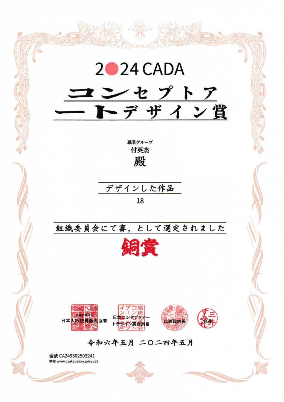 · 2024年获得CADA日本概念艺术设计奖自由设计师铜奖